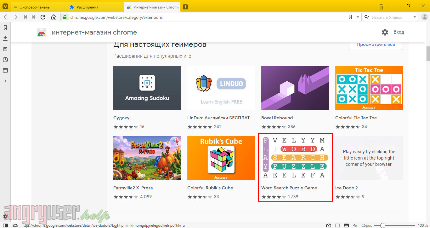 Далее пролистайте перечень расширений, выберите понравившееся и щелкните по нему левой кнопкой мыши.